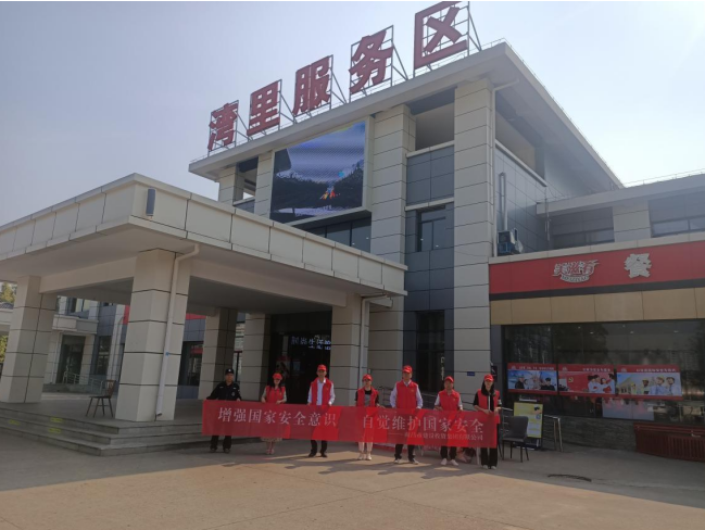 1、南昌高速灣里服務區(qū):志愿者們身穿活動服裝,積極投入宣傳工作中。在灣里服務區(qū)張貼國家安全宣傳海報,擺放宣傳展板展臺,大屏幕滾動播放國家安全教育片,很多過往群眾和司乘人員趁著來服務區(qū)的休息間隙在宣傳臺前駐步了解情況,現(xiàn)場志愿者發(fā)放《國家安全宣傳》手冊、宣傳用品,解答國家安全法律知識、普及國家安全教育知識、什么是國家安全、國家安全包括哪些方面等內容。營造濃厚的現(xiàn)場宣傳普法氛圍,引導廣大群眾積極履行維護國家安全義務,推動維護國家安全教育深入人心、筑牢國家安全防線。